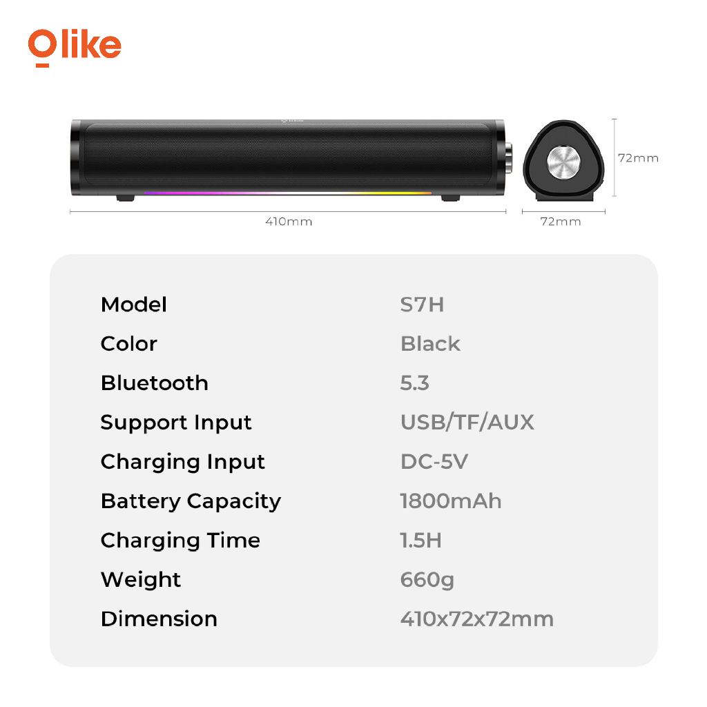 OLIKE Speaker Bluetooth S7H + LED Input USB/TF/AUX 1800mAh | Dynamic Sound And Powerful Audio Bass Max Stereo Soundbar A
