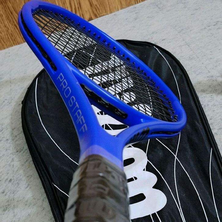 Raket Tenis Pemula Wilson Pro Staff v12 Carbon Blue Siap Pakai Free Grip