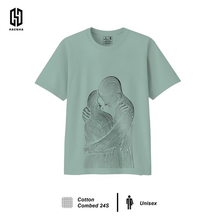 Haenha Motif Hug Baju Kaos Distro - T Shirt Sablon Unisex Black White Sage Cream
