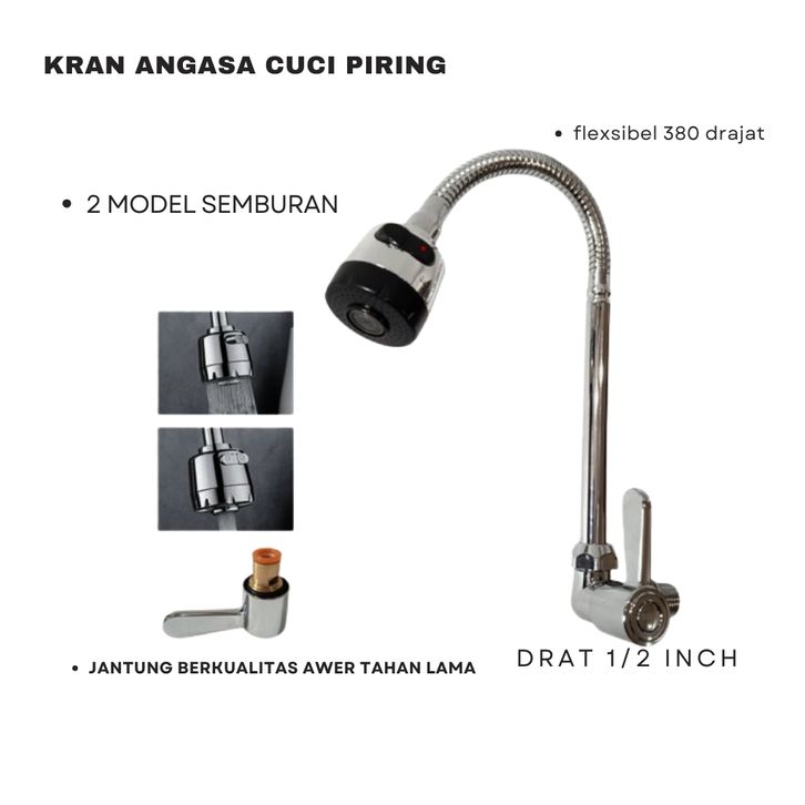 TERMURAH Kran Angsa Fleksibel Kepala Dua M0De Cuci Piring Keran Sink Stainless Stanlis Dapur