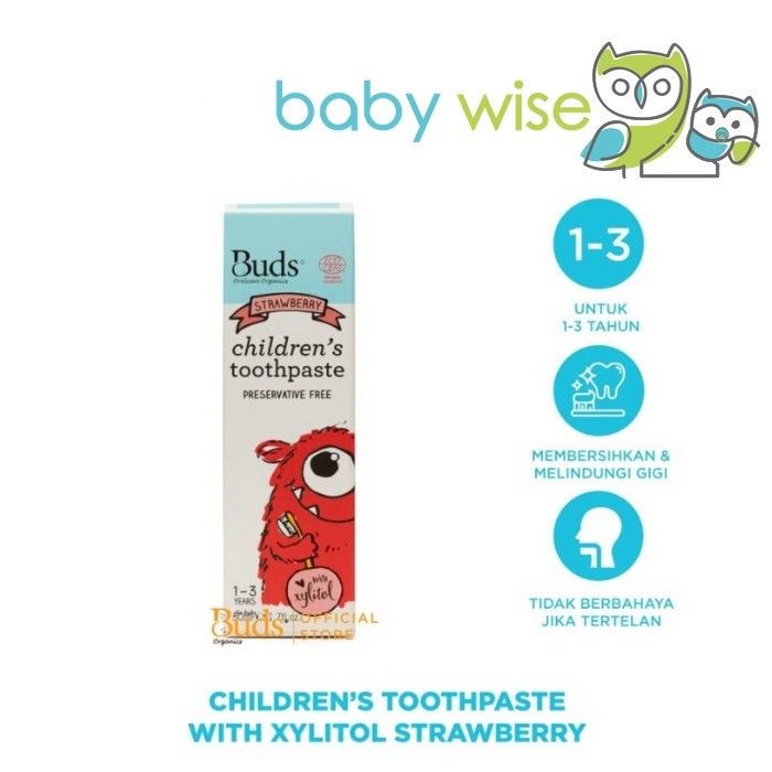Buds Organics Children's Toothpaste Xylitol (1-3Y) - Pasta Gigi Odol Bayi dan Anak Aman Bisa Ditelan