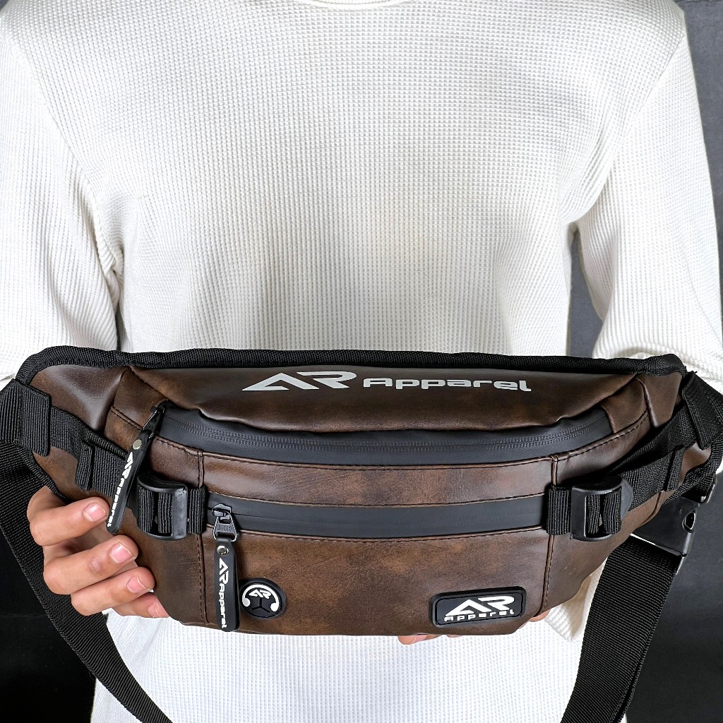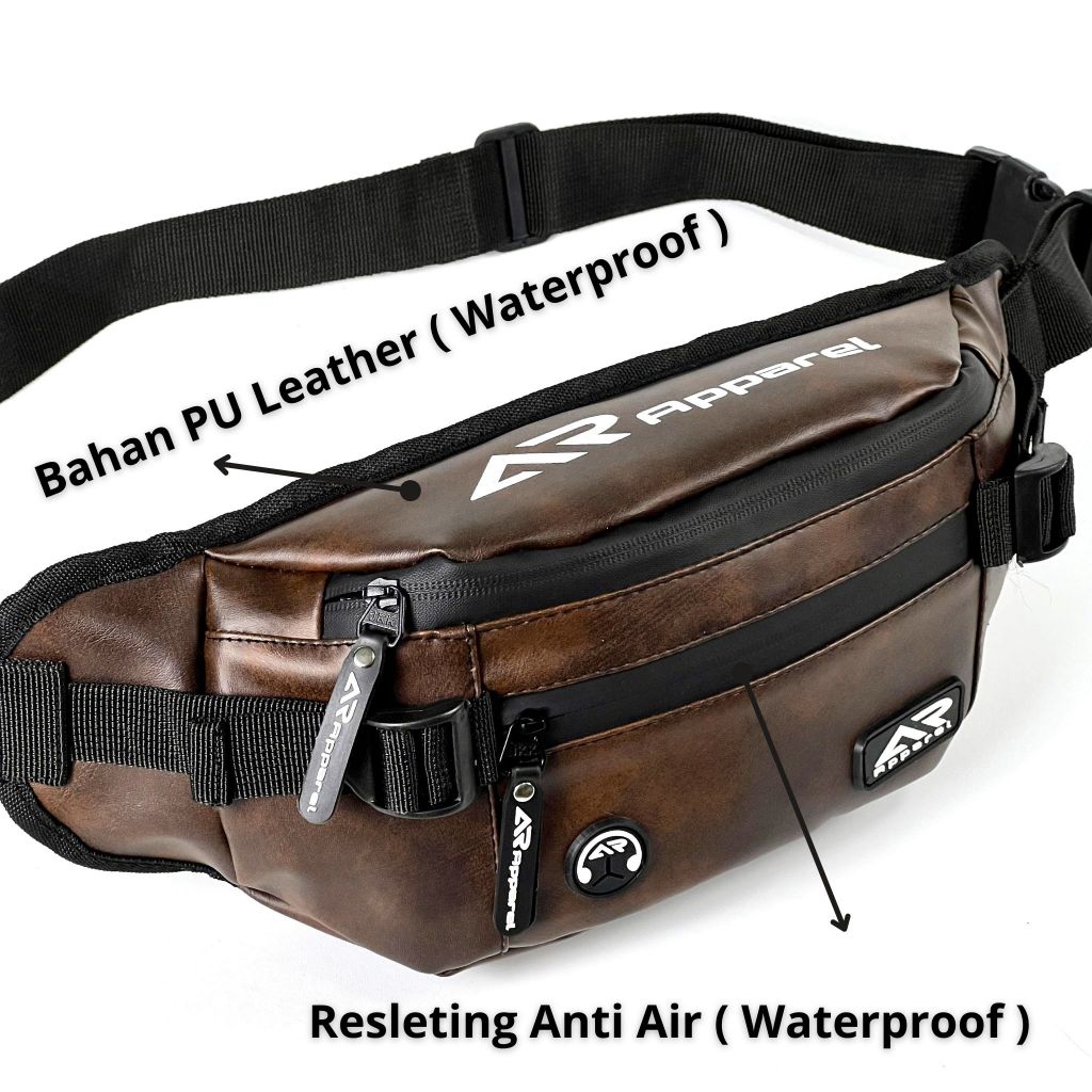 AR APPAREL - Tas Selempang Pria Waistbag Waterproof PREMIUM Slingbag PU Leather Tas Pinggang Pria
