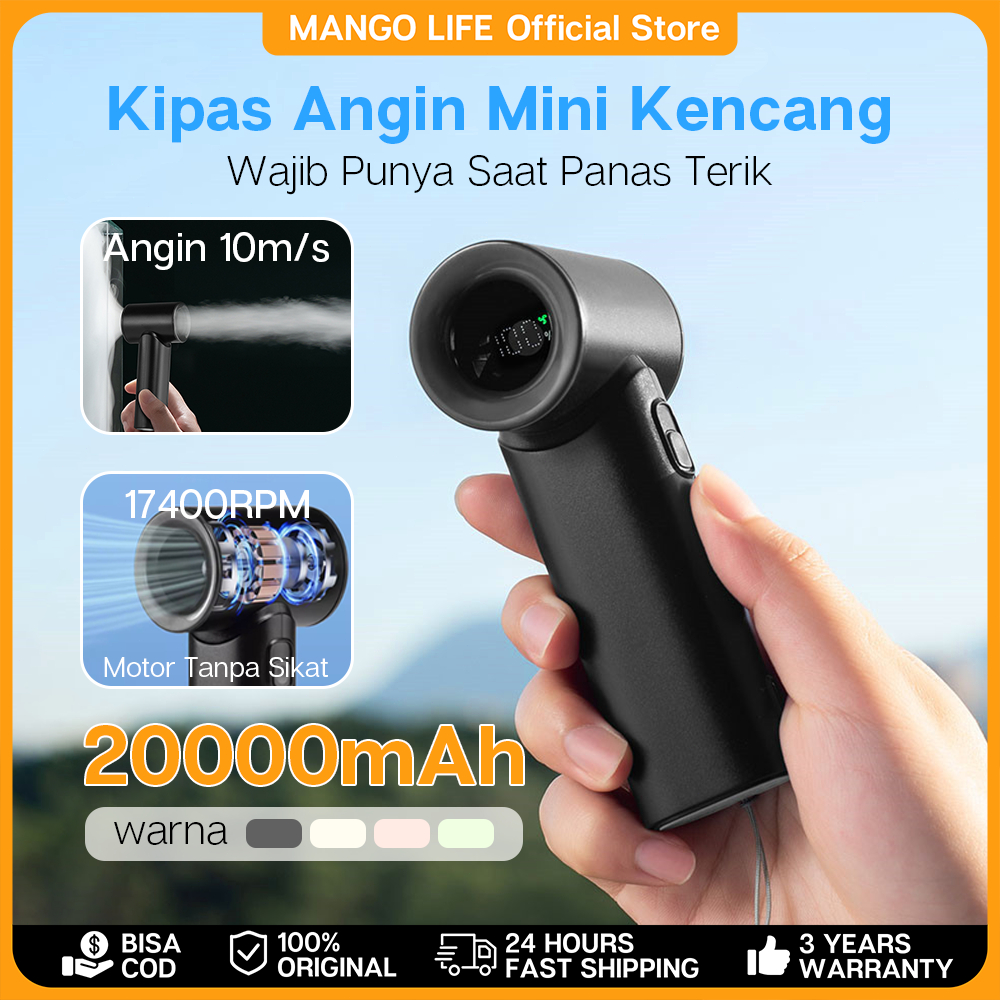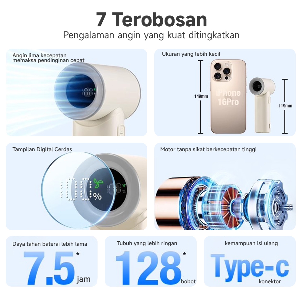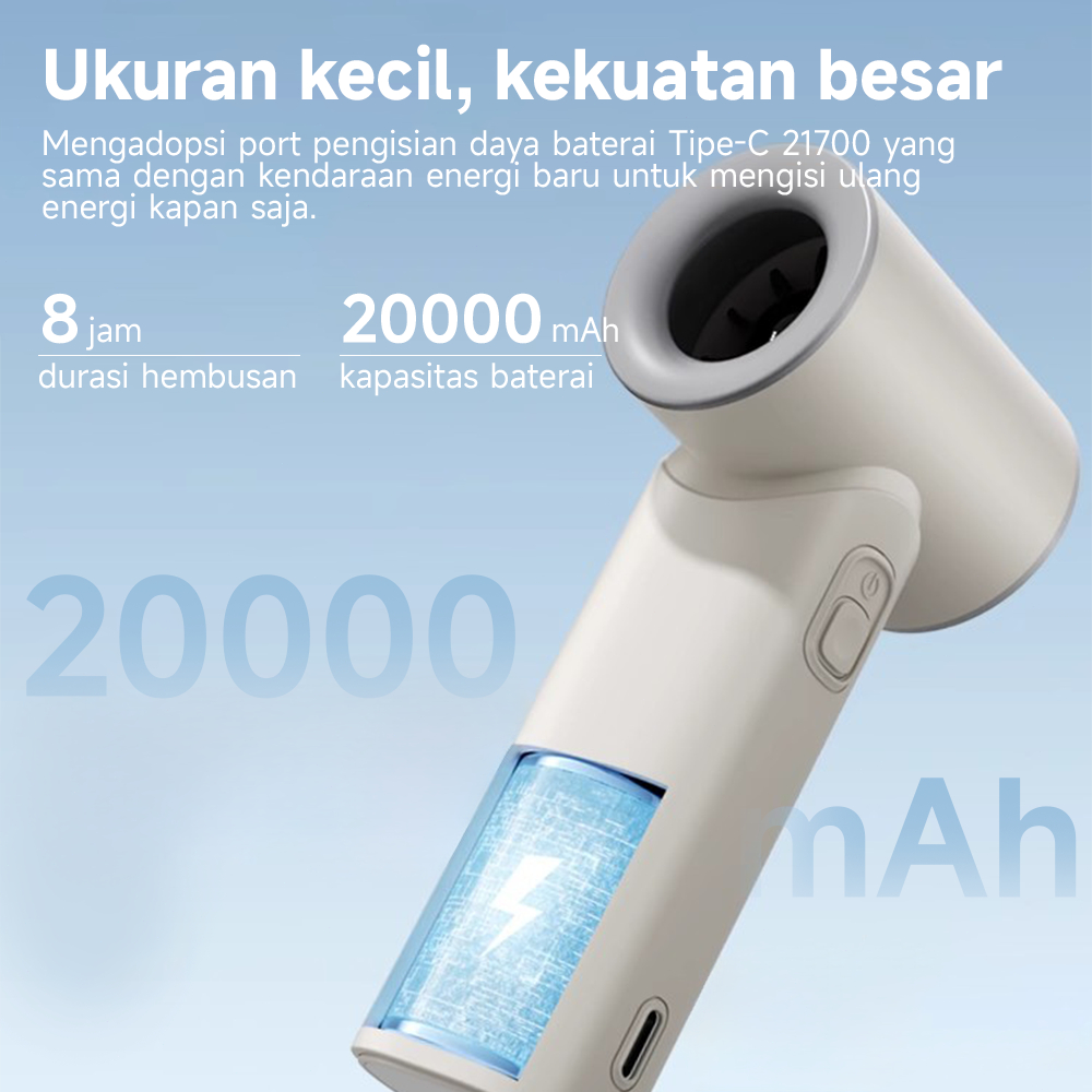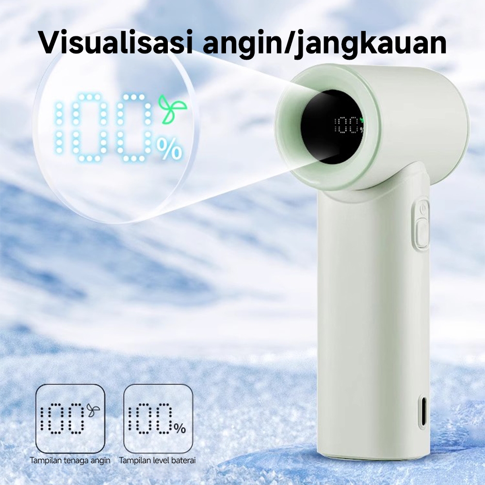 Kipas Mini Tangan Portable 100 Gear Kecepatan Angin Super Kencang 17400 RPM LED Display Baterai Tahan Lama