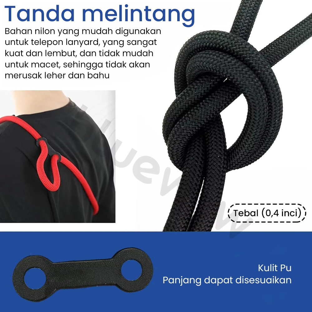 BlueWow Adjustable Gantungan Tali HP Panjang 150cm / Strap Tali Lanyard Gantung Hp Kamera Id Card Universal Panjang / Tali Sling Case Universal