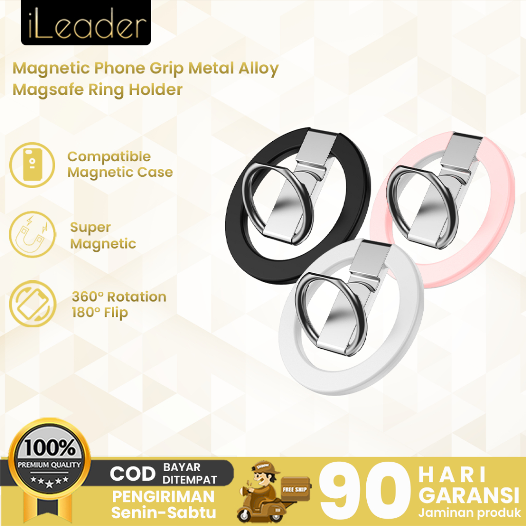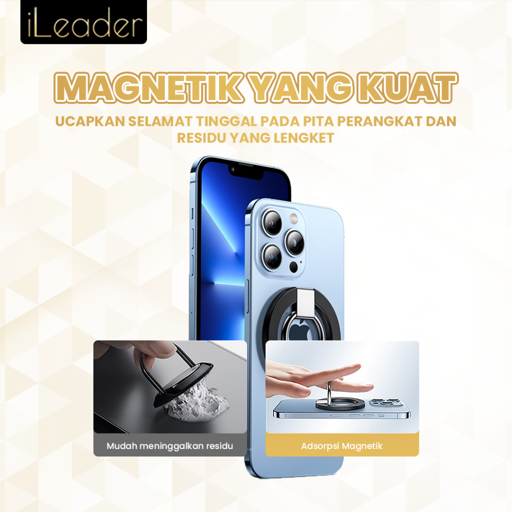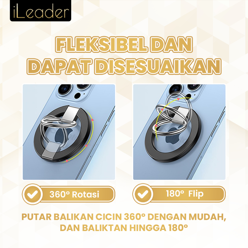 iLeader Magnetic Phone Grip Metal Alloy Ring Holder Adjustable Stand untuk iPhone 12 13 14 15 Series