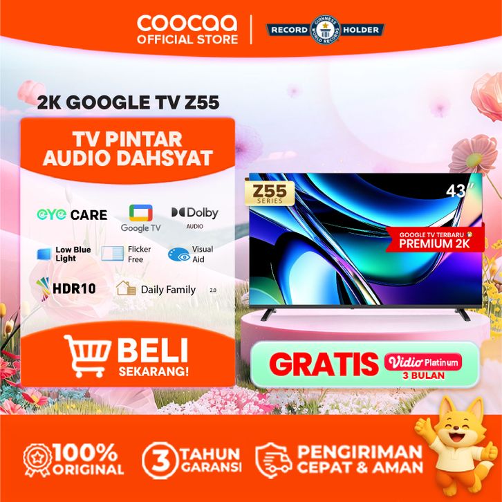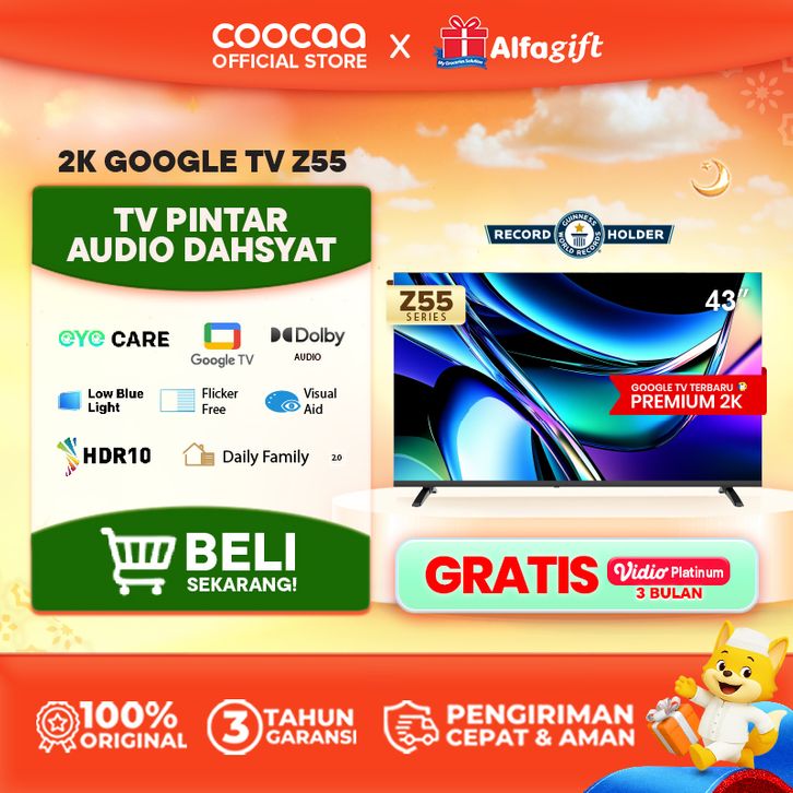 [TERBARU] COOCAA TV 43 inch Z55 - Google TV - Eye Care 5.0 - Dolby Audio - Find My Remote - Voice Control - HDR10 - (CO