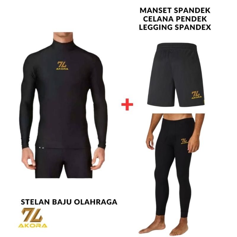 PAKET 3 IN 1 BAJU MANSET OLAHRAGA SPANDEX LEGGING DAN CELANA PENDEK OLAHRAGA SET PAKAIAN OLAHRAGA MANSET FUTSAL VOL