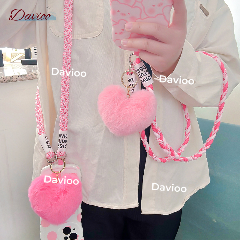 Lovely Heart Tali HP Lanyard Universal Bisa Cross-body Motif Heart Gantungan Handphone