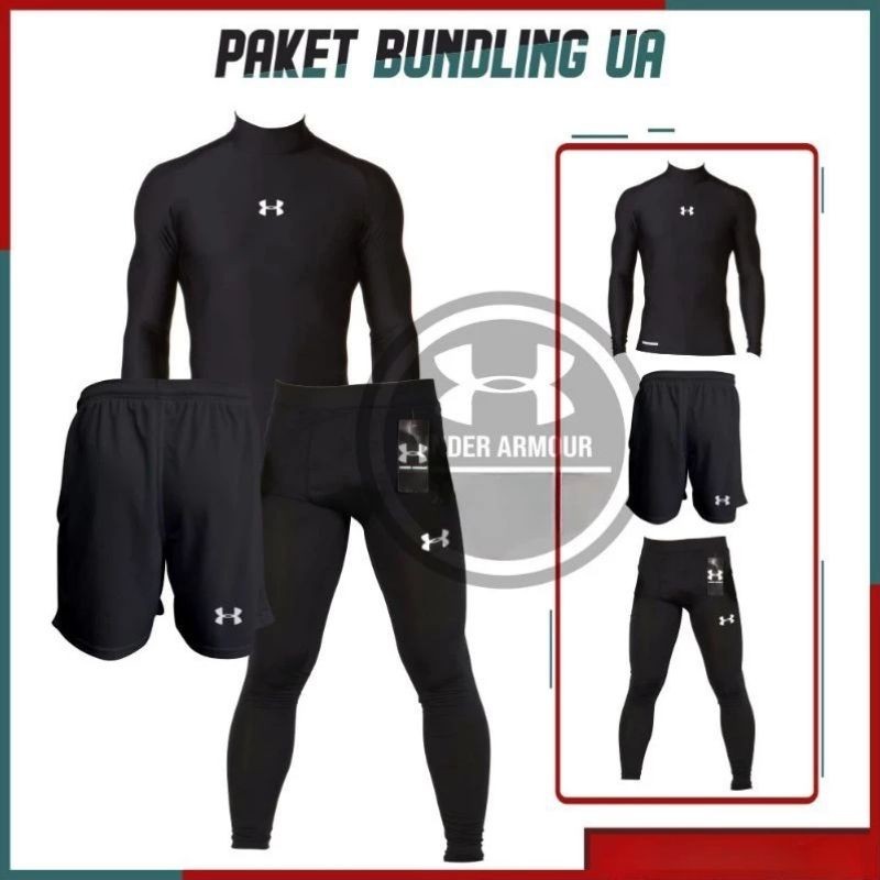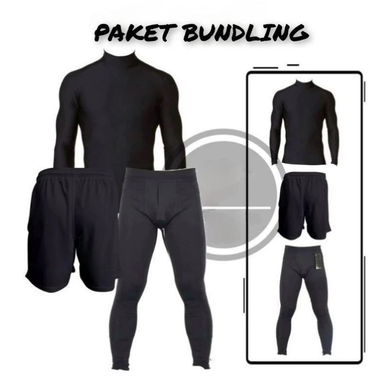 FULL SET - STELAN OLAHRAGA PRIA BAJU MANSET BASELAYER CELANA LEGGING DAN CELANA OLAHRAGA DAPAT 3 PCS PAKAIAN SPORT