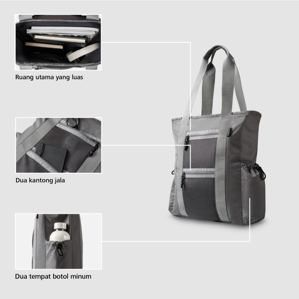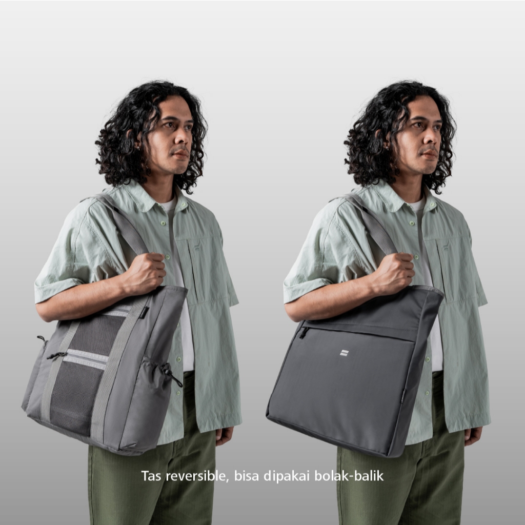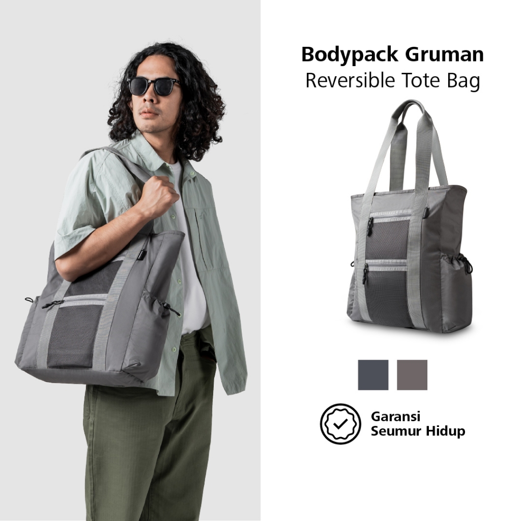 Bodypack Gruman Regular Tote Bag Tas Jinjing Kuliah Sekolah Travel Reversible Bolak Balik - Abu