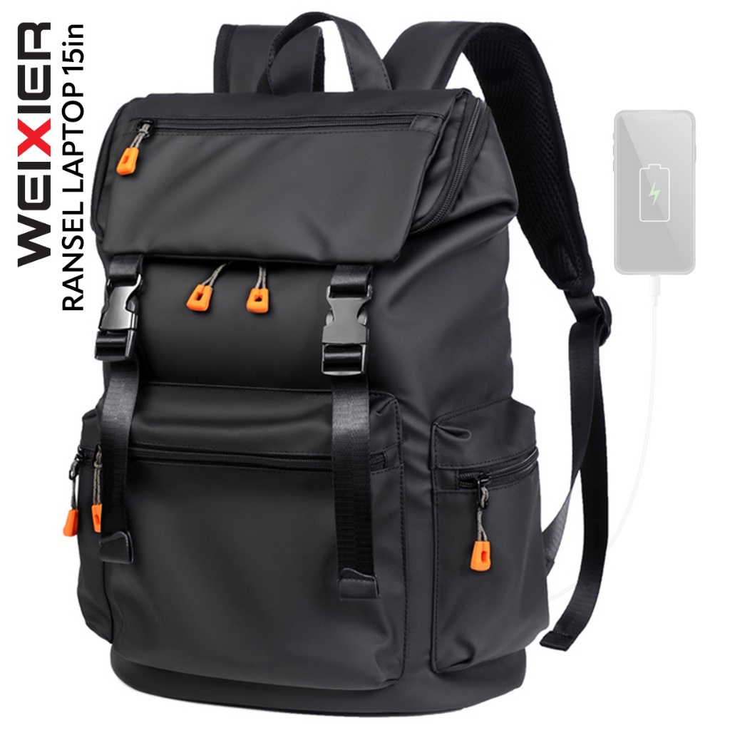 WEIXIER B1862 Tas Punggung Pria Ransel Laptop Backpack Port USB Anti Air WX-OS