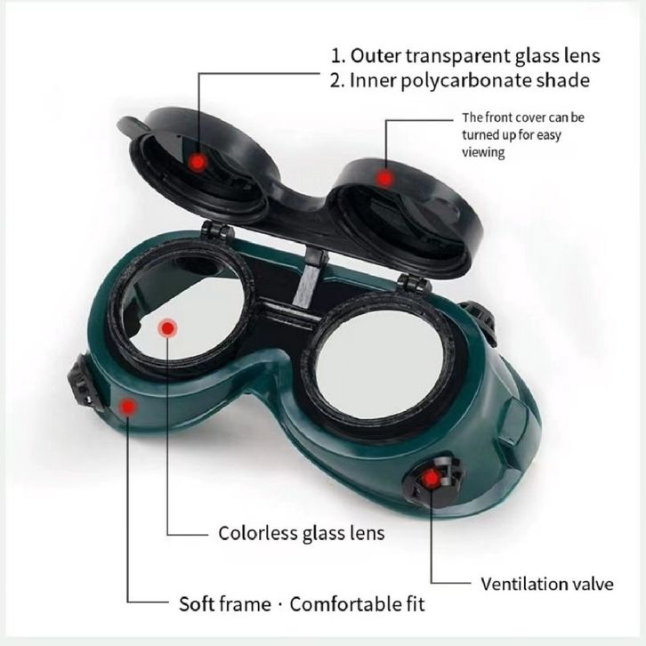 PROMO Kacamata goggle las Bulat Doubl / Kacamata Pengaman Las / Gerinda Dan Las Buka Tutup Welding Goggles afobf
