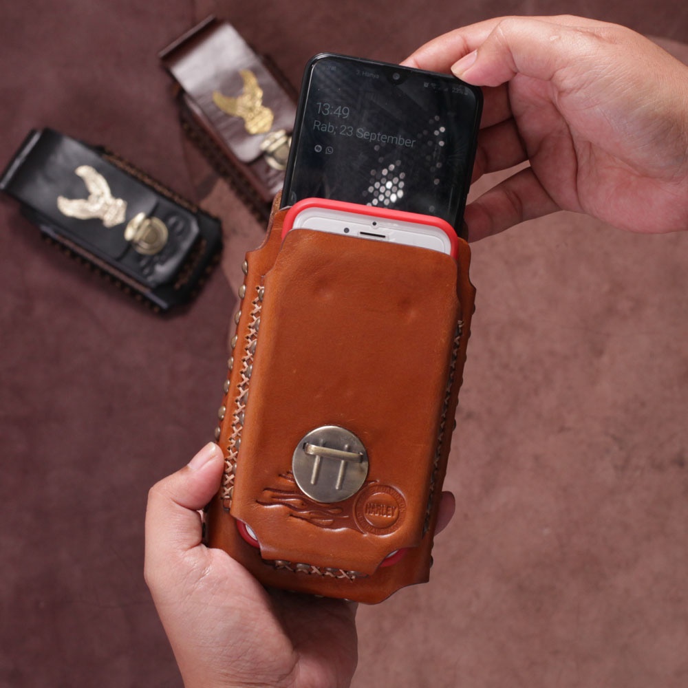 -PD02- Tas Pinggang Pria/cowok Dompet handphone murah Double Slot Kulit Sapi Asli kualitas impor