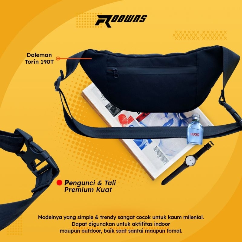 Tas Waistbag Pinggang Waist bag Selempang Slempang Pria Wanita Waterproof Daun Talas Anti Bara Api Roowns Jomes