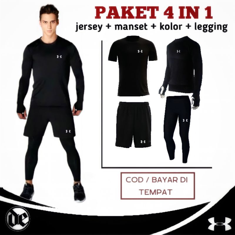 FULL SET BAJU JERSEY CELANA PENDEK OLAHRAGA BAJU MANSET CELANA LEGGING PANJANG PRIA SPORT FUTSAL LARI SEPAK BOLA
