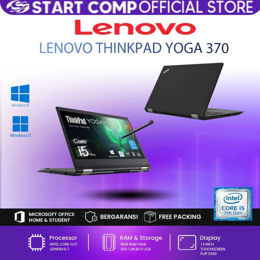Lenovo ThinkPad Yoga 370 | Core i5/i7 Gen 7 | RAM 8GB | SSD 256GB | 13.3” | Laptop Touchscreen with Pen stylus