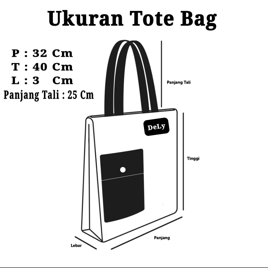 DELY Tote Bag Pria Dan Wanita Bahan Kanvas Tas Jinjing Model Kasual Penutup Resleting DLY 0923