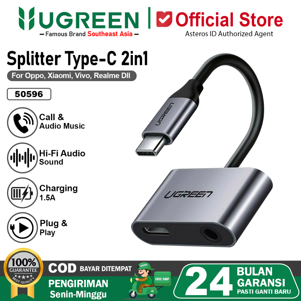 UGREEN Converter Splitter Type C to Jack 3.5mm + Type C Charging Audio Call Open Mic Game 50596