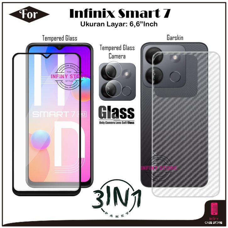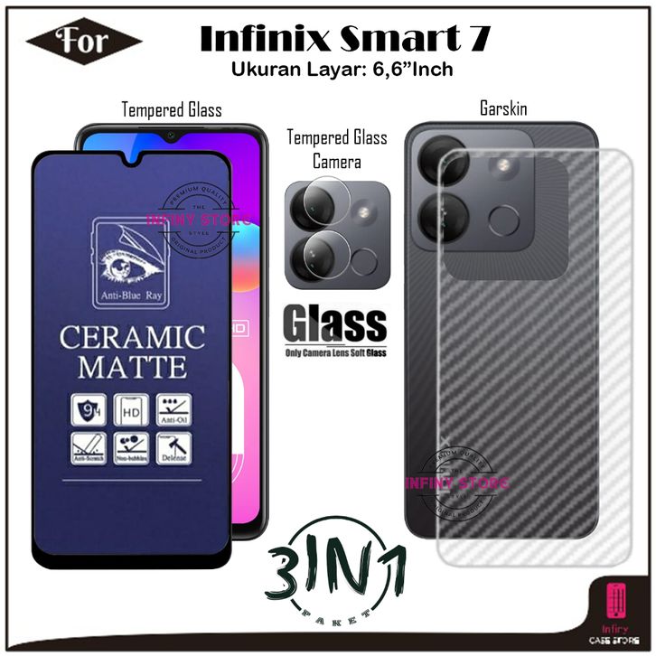 Paket 3IN1 Anti Gores Ceramic Privacy For Infinix Smart 7 7 HD Smart HD Tempered Glass Full Cover