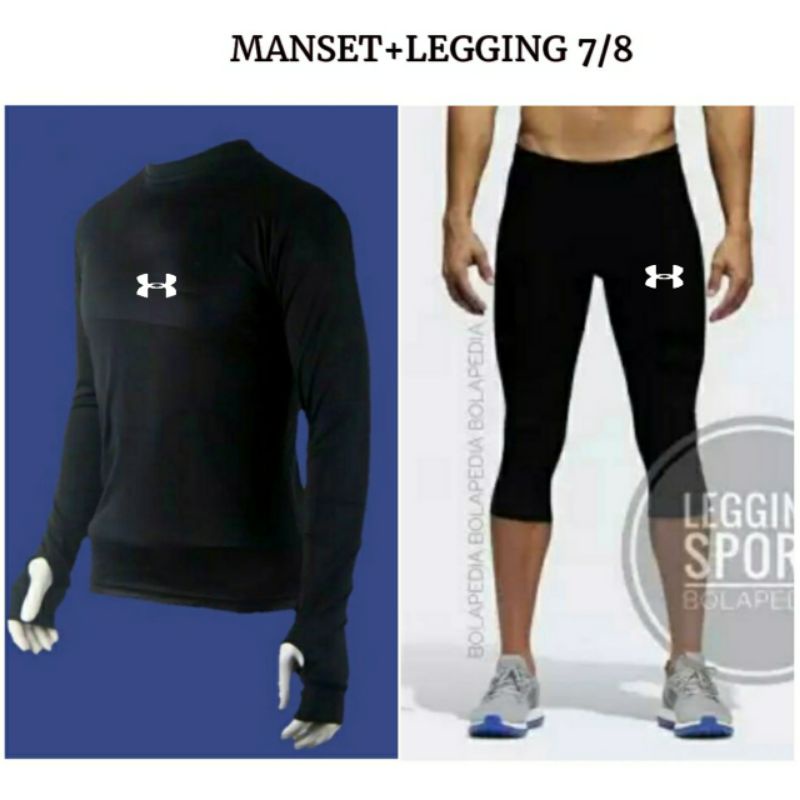 STELAN - BAJU MANSET LENGAN PANJANG DAN CELANA LEGGING BASELAYER 3/4 SPORT FUTSAL LARI GYM BASKET VOLY