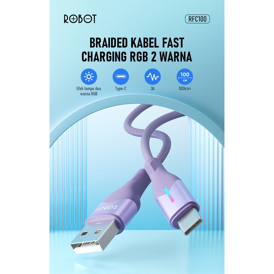 ROBOT RFC100 Kabel Data Type C 3A Rgb Light 1Meter