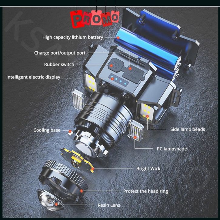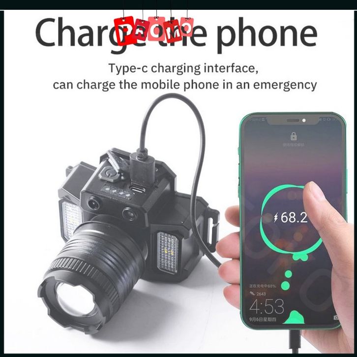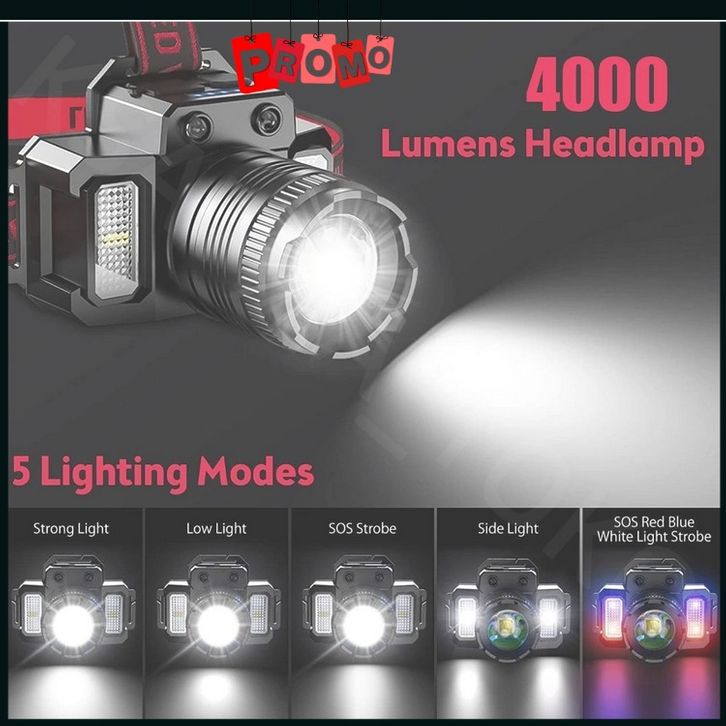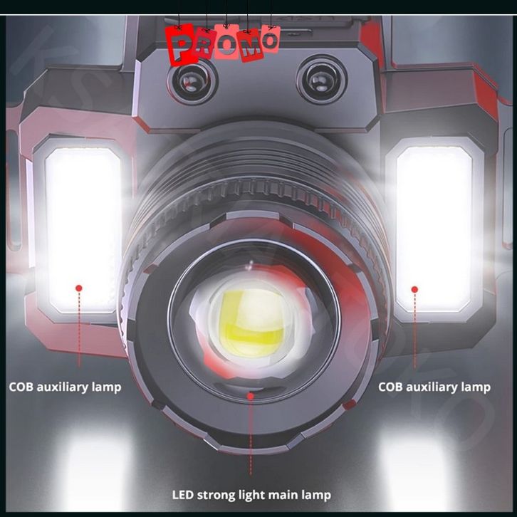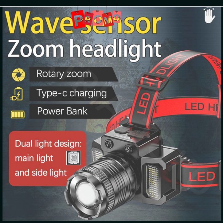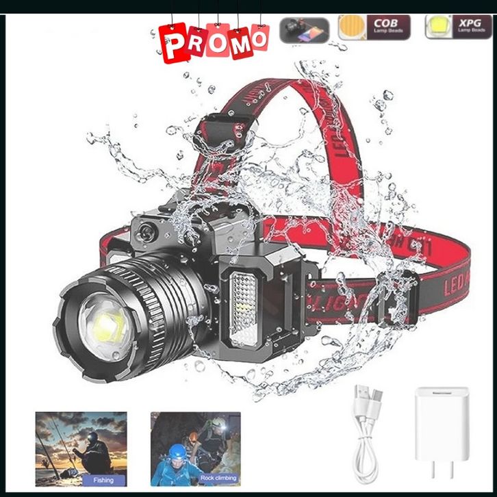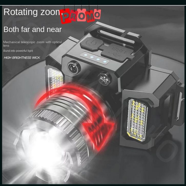 Lampu Kepala LED Tahan Air/Headlamp F-T51 Induksi Sensor Gerak Zoom Rotating/Super Terang 5000 Lumen/USB Charging Senter