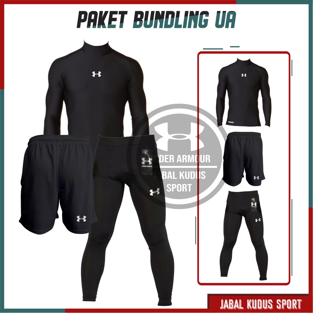3 IN 1 - SETELAN BAJU MANSET OLAHRAGA PRIA WANITA LEGGING BASELAYER CELANA PENDEK SEPAK BOLA FUTSAL