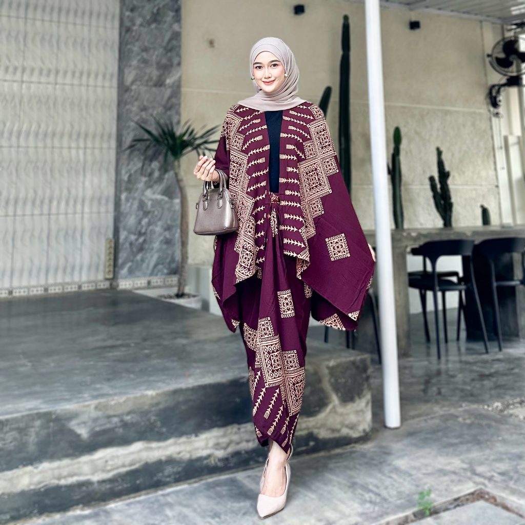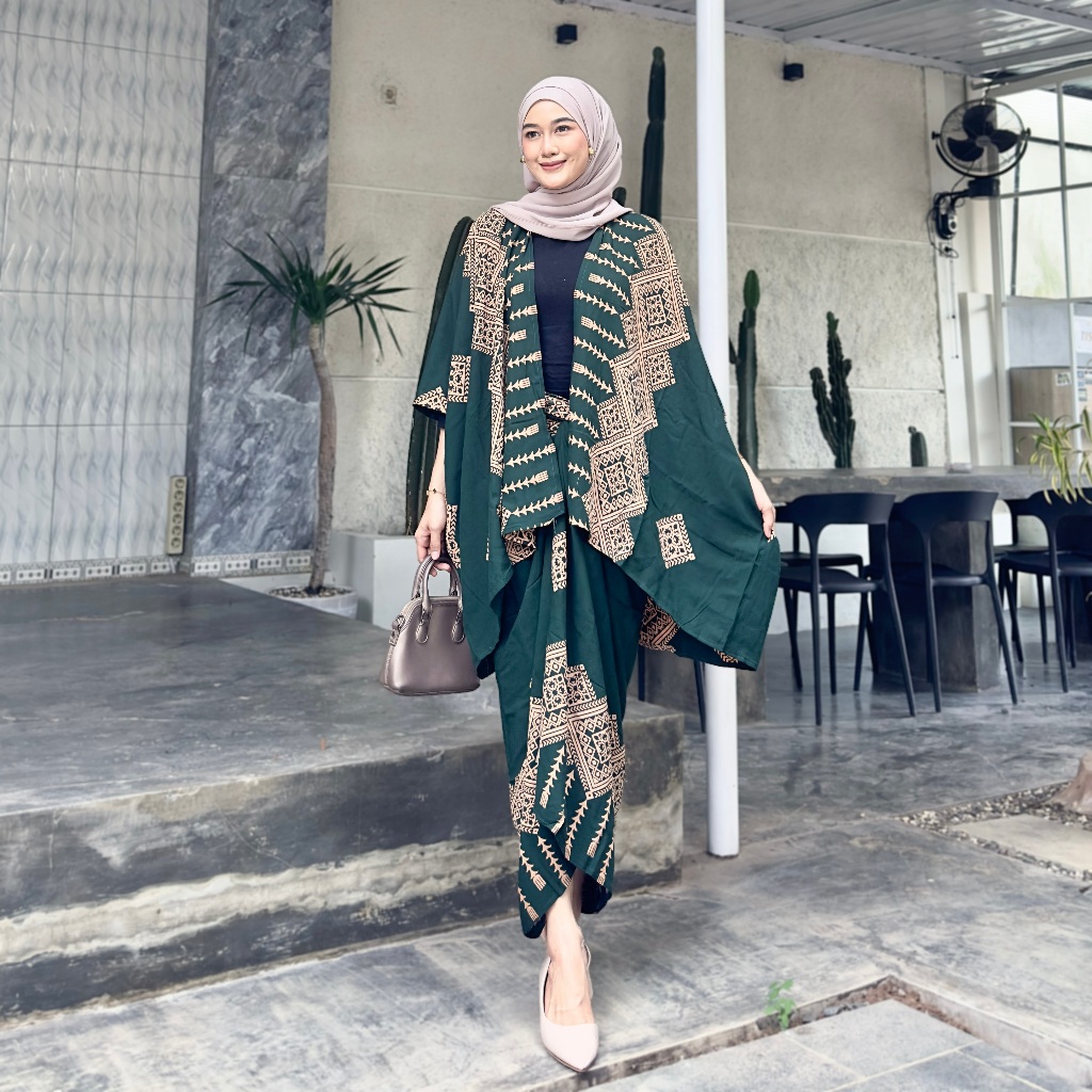 SET KEBAYA MODERN OUTFIT KONDANGAN SIMPEL ONE SET BATIK OUTER ROK LILIT KIMONO WANITA SETPRADA