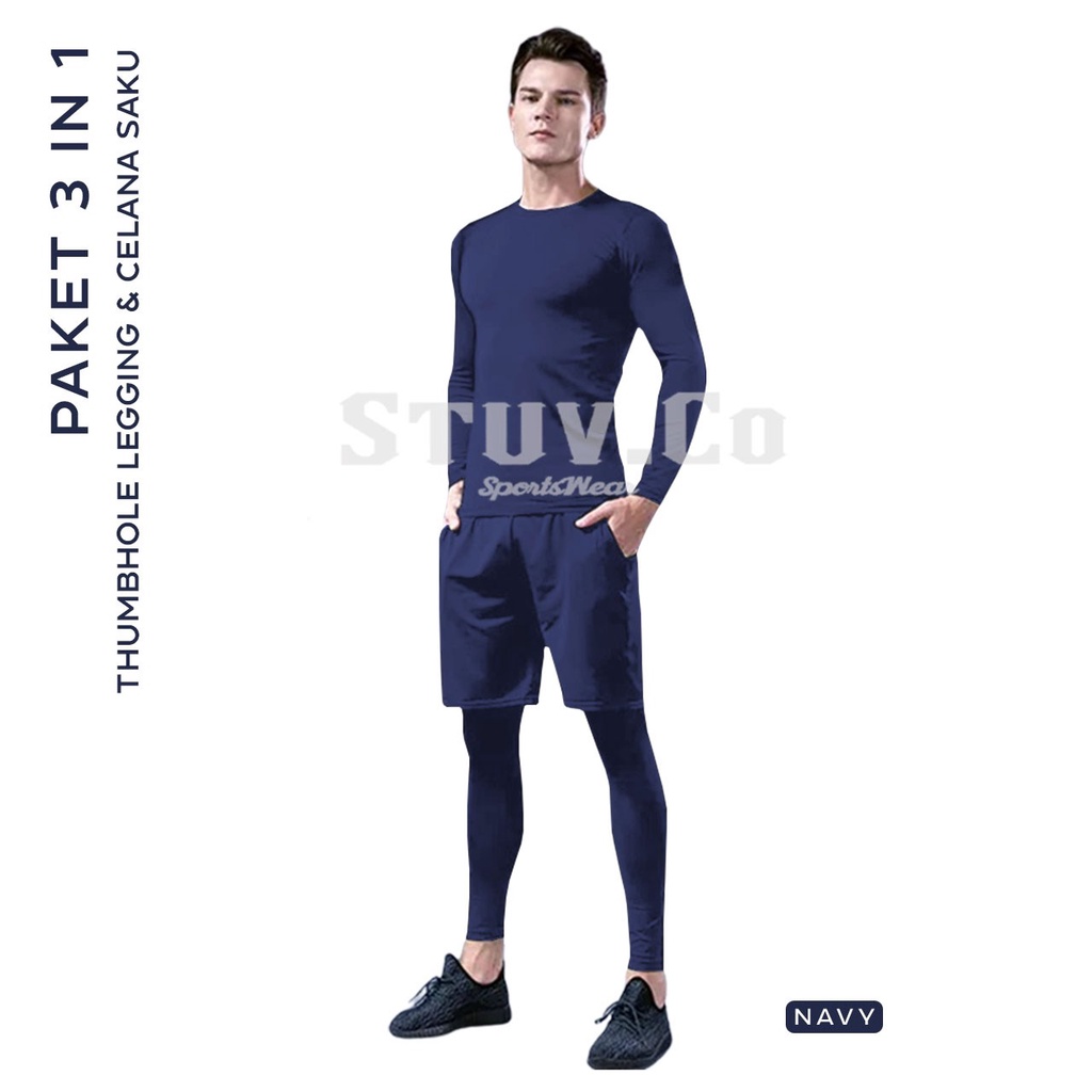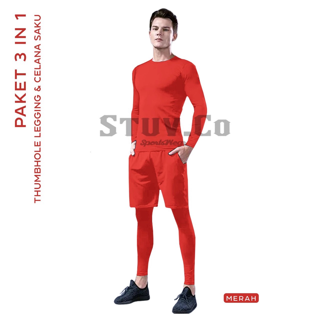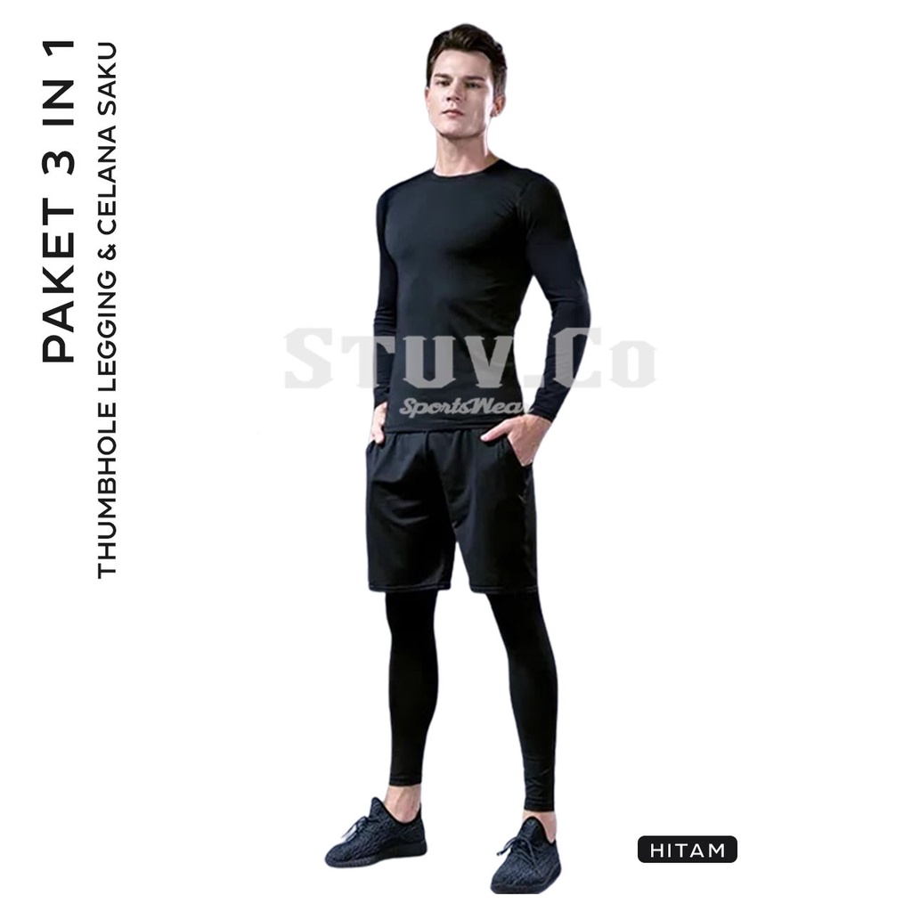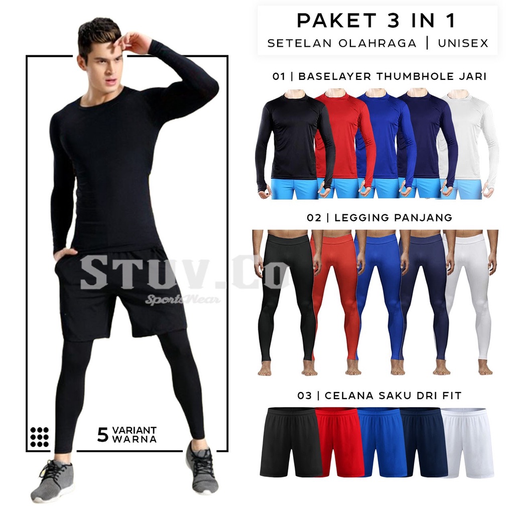 PAKET STELAN OLAHRAGA PRIA WANITA BASELAYER LENGAN PANJANG JARI LONGSLEEVE THUMBHOLE LEGGING PANJANG LEGING LONGPAN