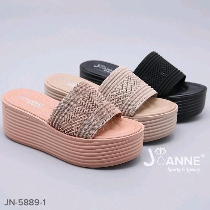 JOANNE Wedges Sandal Wanita JN5889-1 Black Pink - BLACK 36