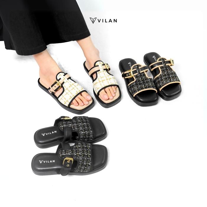 Vilan - Sendal Vior Sandal Wanita Kekinian Slop Platform 3cm - BLACK 36