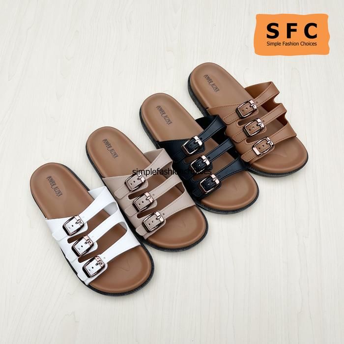 Sandal Selop Wanita Sendal Flat Kekinian Tali Gesper Tiga Aktif Karet Jelly Anti slip dan Ringan SFC50 - Putih 36-37