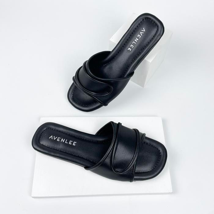 Sandal Selop Wanita Flat Gaya Kasual yang Berkelas dengan Sol Karet Anti Licin Avenlee Rein - HITAM 37
