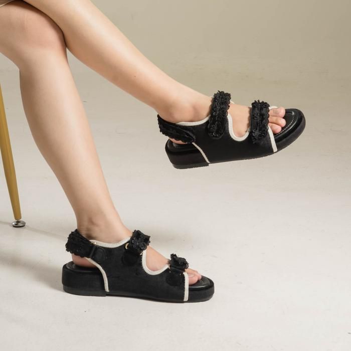 Dianable - Kana Platform Sendal Wanita (Black - Cream) - Black 36