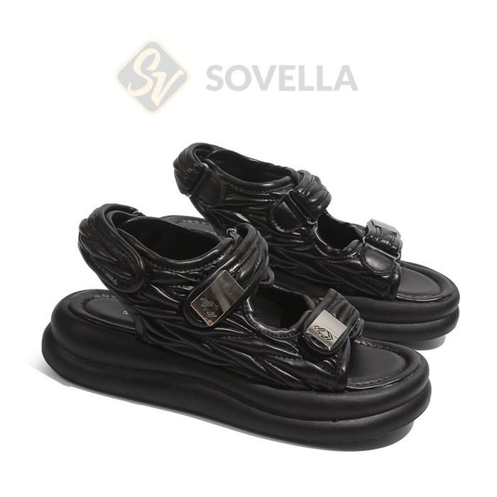 SOVELLA Luffy Sandal Kasual Sendal Tali Wanita Karet - BLACK 37