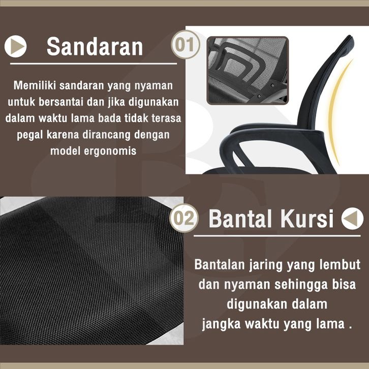BG SPORT Kursi Kantor Staff Chair Office Jaring Minimalis Hidrolik Ergonomis9reen Steel