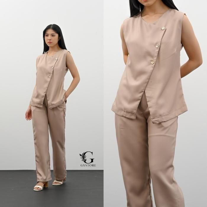 Gystore - Ozara Set Vest dan Celana Panjang Wanita Kasual - Hitam All Size