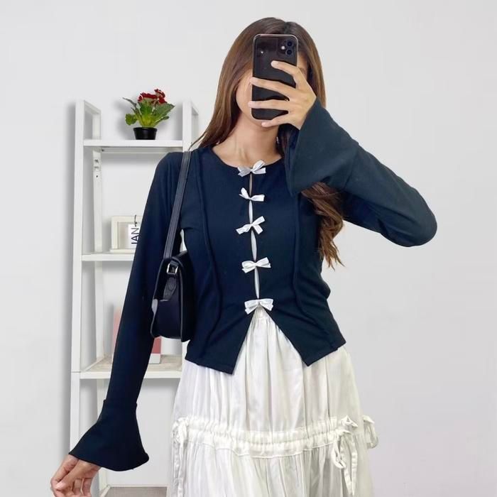 Rosela Blouse Knit / Leora Blouse / Blouse Pita / Korean Blouse /Blouse Wanita - Hitam