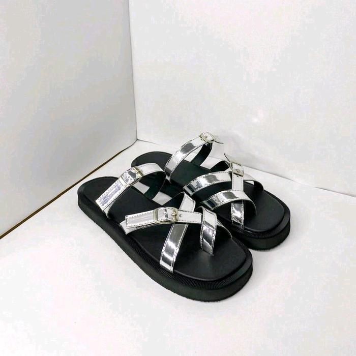 Sandal spon tali BIANCA silver Wanita Kasual - silver 36