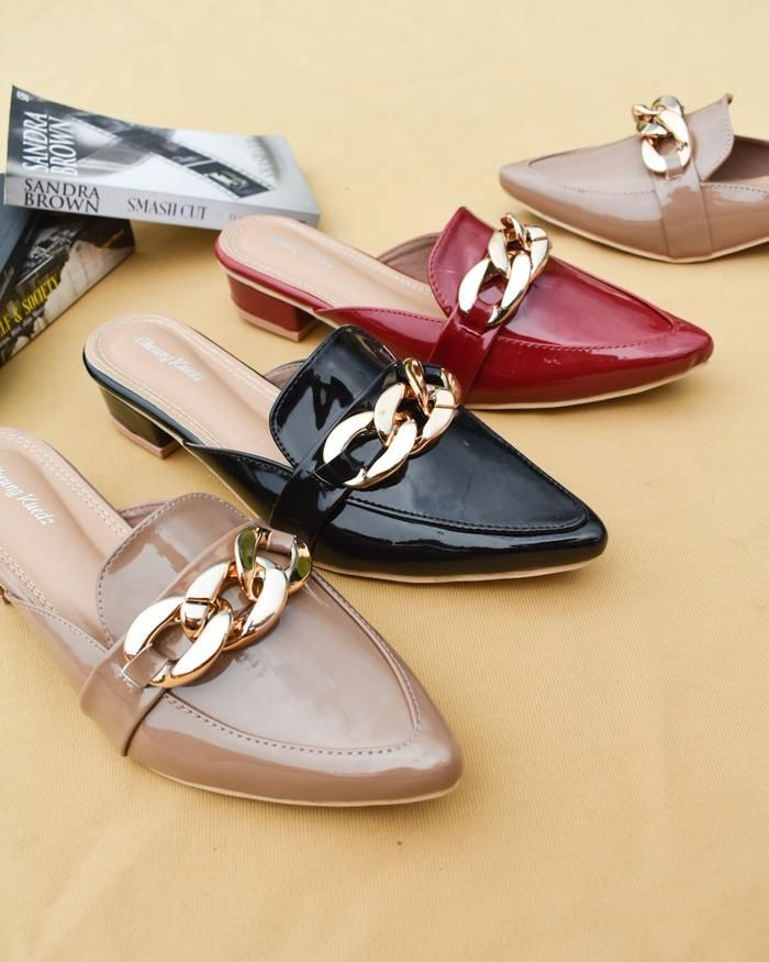 Cheung Kuedz Leoni Sandal Mules Slop Wanita Variasi Rantai Sendal Shoes - Hitam 36