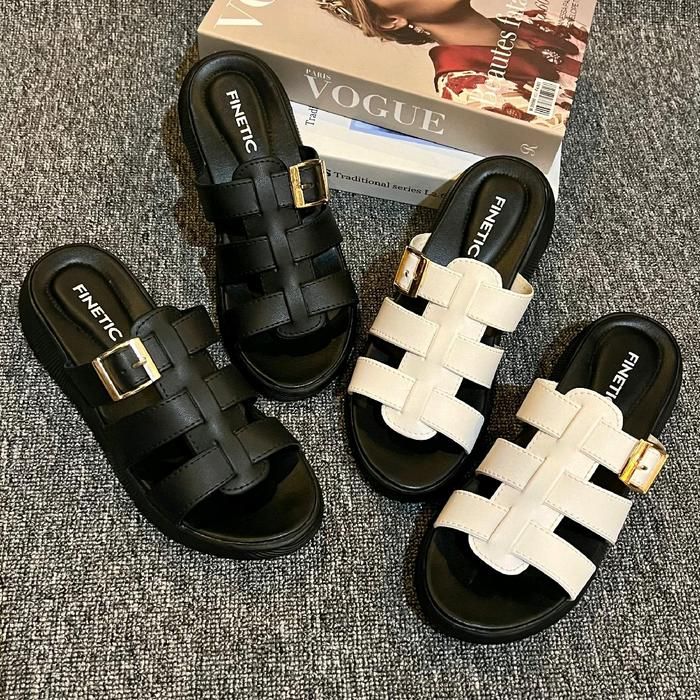 Finetic Sandal Wanita Platform Kekinian Wedges 3 Cm Hak Tinggi Korea Style Perempuan Sendal Hitam - Camelia Hitam 37