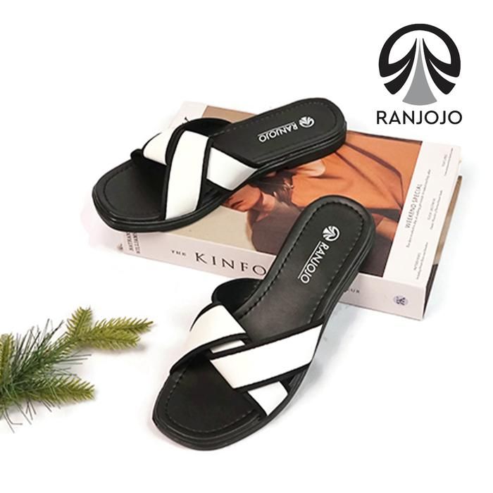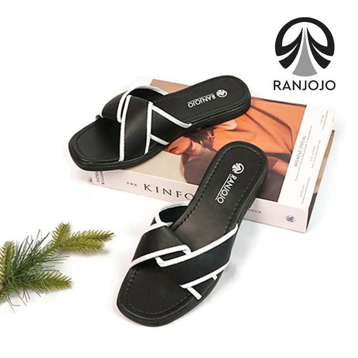 Sandal Wanita Flat Ranjojo RJ35 Sandal Teplek Sendal Dewasa Anti Slip Trendy - HITAM 37