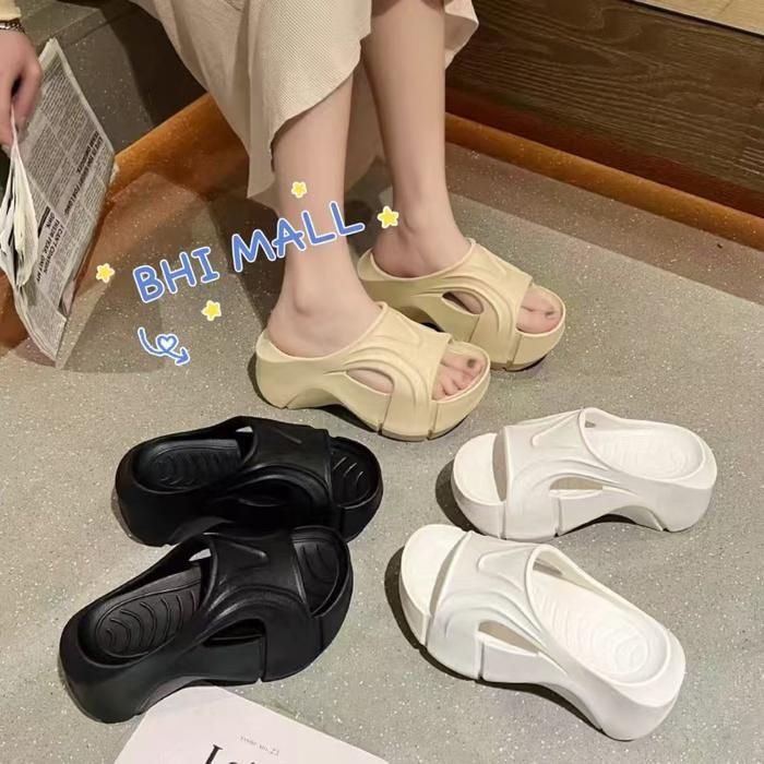 [ASFER]Sandal Wanita Wedges Sendal Selop Tinggi EVA Jelly Karet Kekinian Antislip Empuk Ringan Premium - Hitam 36-37