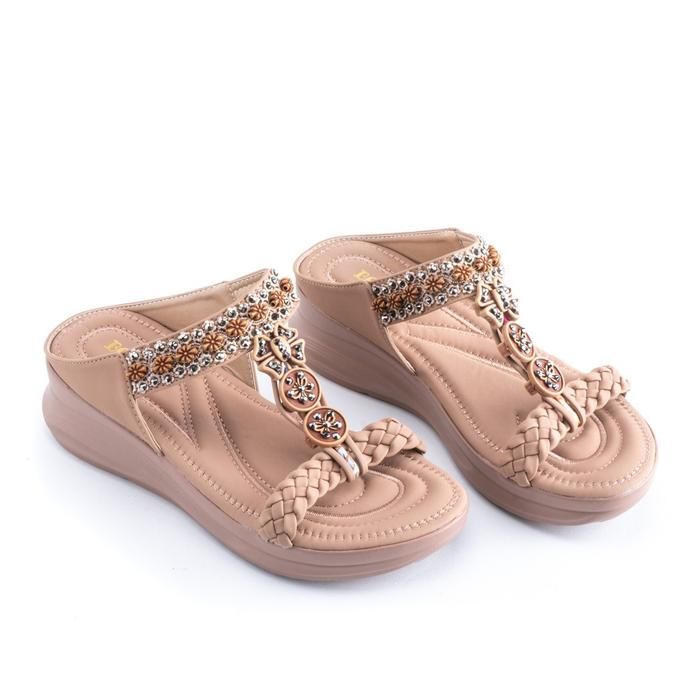 BOZKA sendal wedges classic wanita black and pink TVS10 Sandal Cewek - BLACK 40