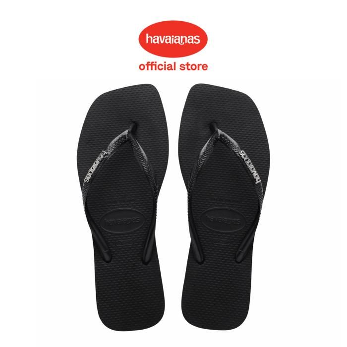 Havaianas 2976 Slim Square Logo Metallic - Black/Silver - Sandal Wanita - Hitam 33/34