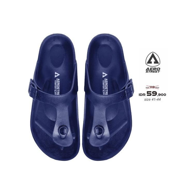 Aerostreet 41-44 Rhea Navy - Sandal Jepit Pria Wanita ADAAA - 36