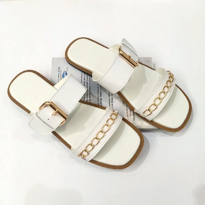 Sandal flat Amanda rantai putih Wanita Karet - putih 36