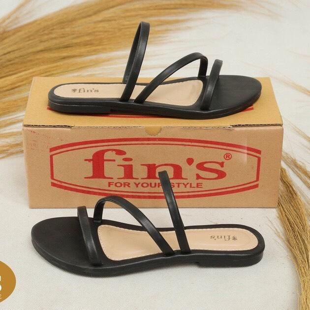 SANDAL Sendal TALI TIGA BAHAN SINTETIS Wanita Flat Sendal Hitam JENNIE - hitam 36