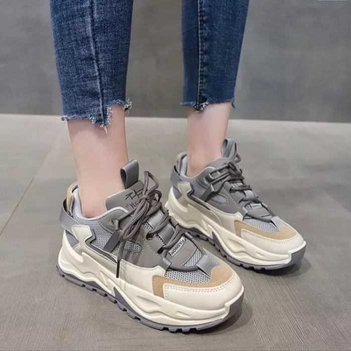 SR Sepatu Sneakers JUNK Wanita Sepatu Kasual Ootd Round Toe Casual Karet - Cream 37