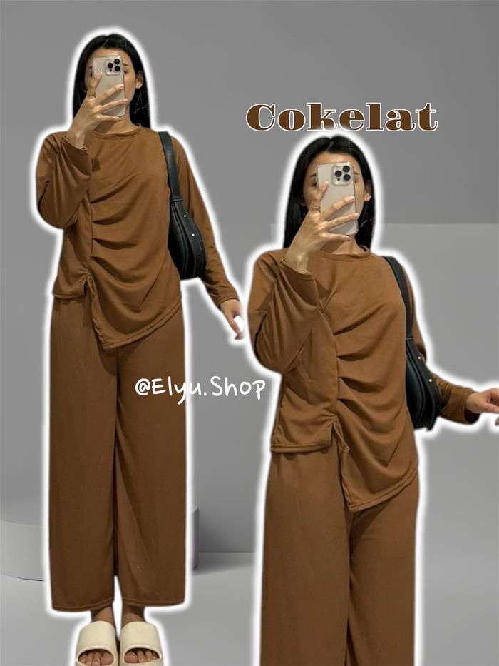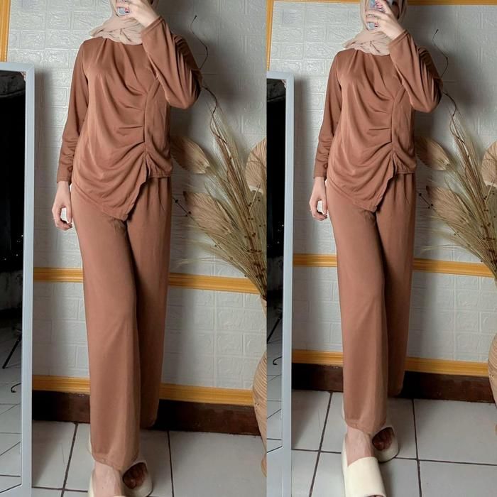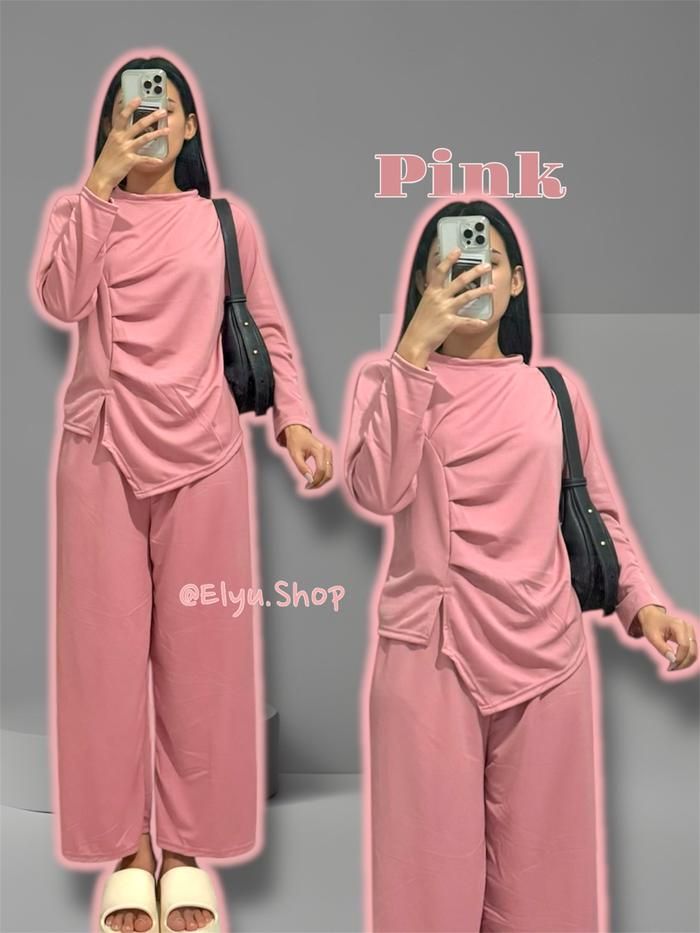Setelan Wanita Nadia Set Knit Oneset Wanita Rib L-XL - Pink